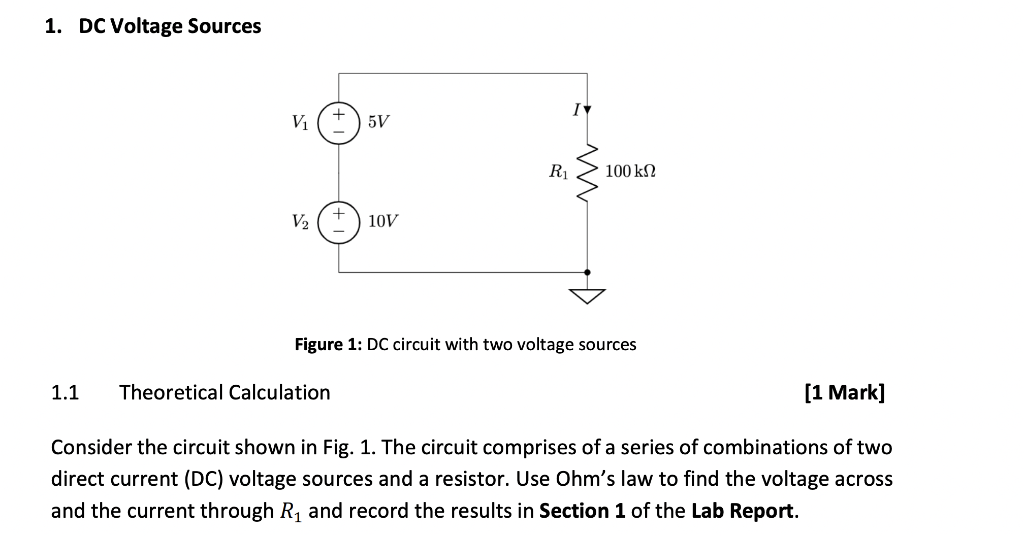 Solved 1. DC Voltage Sources Figure 1 DC circuit with two